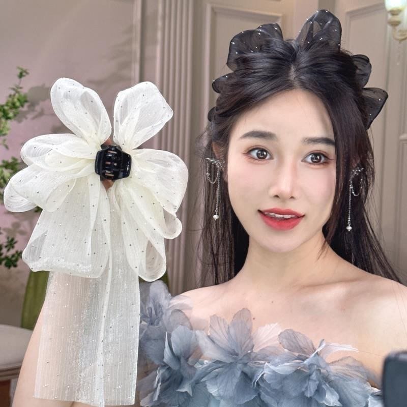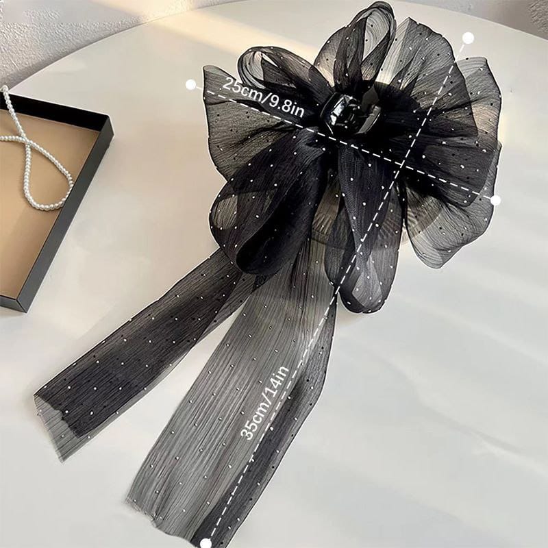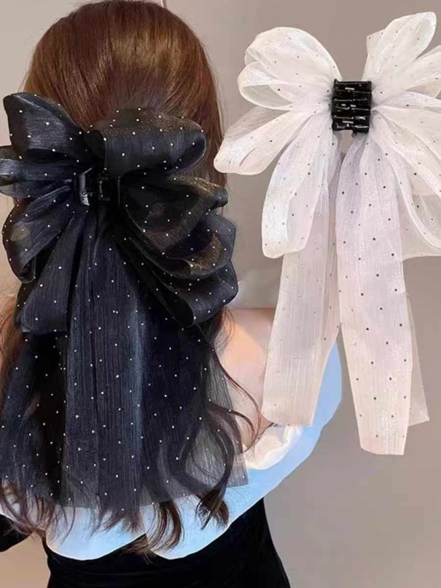A statement hair accessory with a soft, flowing bow design that adds instant elegance to any hairstyle. Perfect for chic everyday looks or special occasions